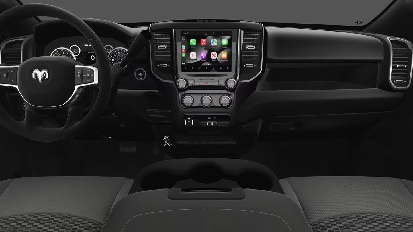 - 6.4L HEMI V8: Standard on Tradesman and Big Horn, producing 405 hp and 429 lb-ft of torque with about 13–16 MPG city and 17–20 MPG highway unloaded (5–10 MPG when towing heavy). Paired with the TorqueFlite eight-speed automatic transmission for smooth shifts and durability.