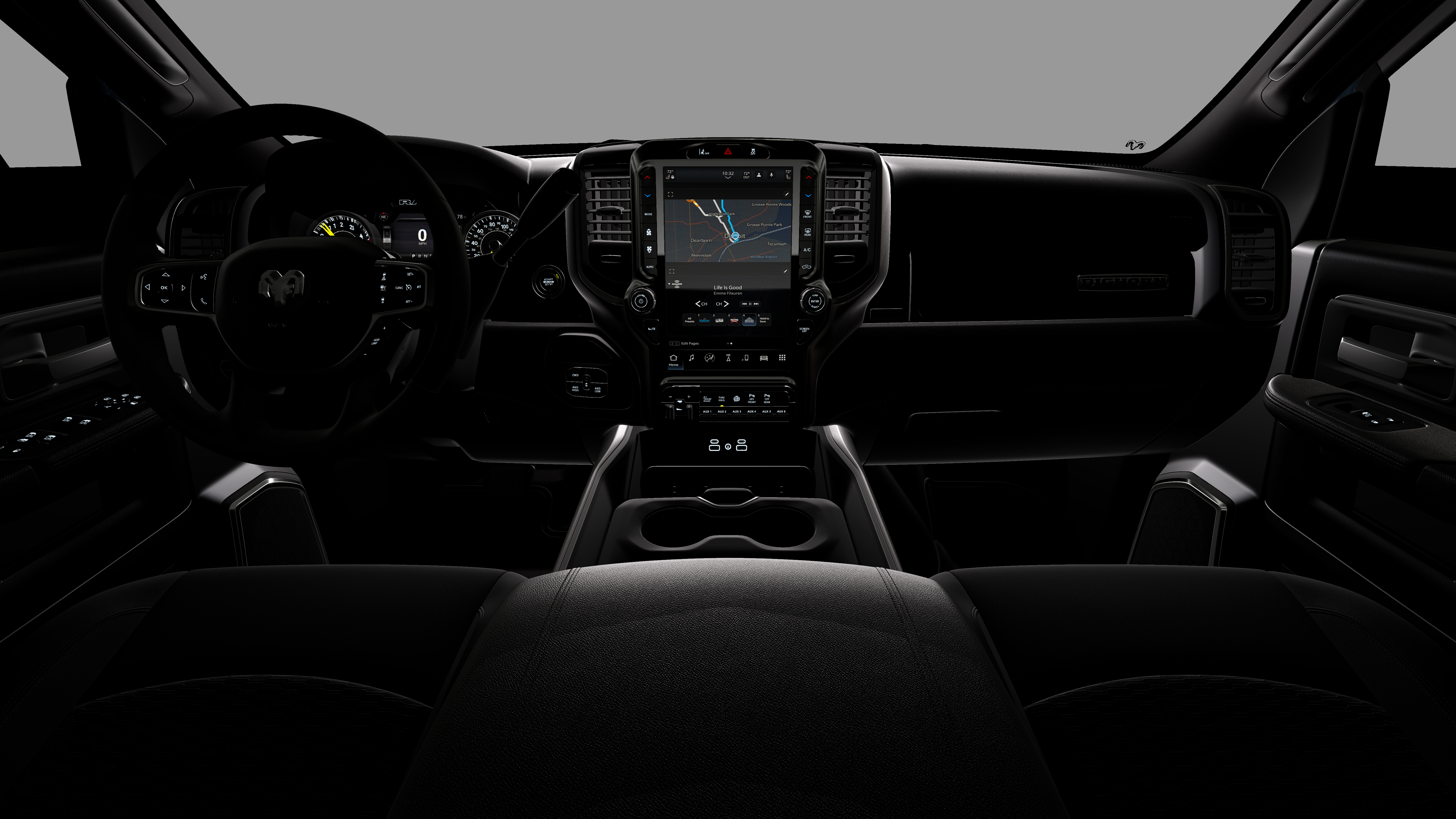 - Radio w/Seek-Scan, Clock, Speed Compensated Volume Control, Aux Audio Input Jack, Voice Activation, Radio Data System and Uconnect External Memory Control