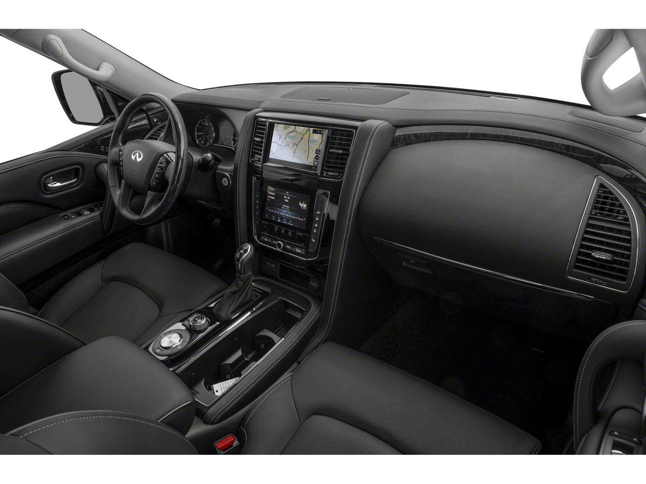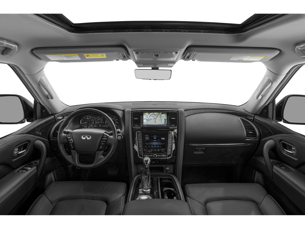 * MUST FINANCE W/ DEALER FOR ADVERTISED PRICE *, 13 Speakers, 2.937 Axle Ratio, 20 Aluminum Alloy Wheels, 3rd row seats: bench, 4-Wheel Disc Brakes, ABS brakes, Air Conditioning, Alloy wheels, AM/FM radio: SiriusXM, Anti-whiplash front head restraints, Apple CarPlay/Android Auto, Auto High-beam Headlights, Auto tilt-away steering wheel, Auto-dimming door mirrors, Auto-dimming Rear-View mirror, Auto-leveling suspension, Automatic temperature control, Brake assist, Bumpers: body-color, Compass, Delay-off headlights, Driver door bin, Driver vanity mirror, Dual front impact airbags, Dual front side impact airbags, Electronic Stability Control, Emergency communication system: INFINITI InTouch, Four wheel independent suspension, Front anti-roll bar, Front Bucket Seats, Front Center Armrest, Front dual zone A/C, Front fog lights, Front reading lights, Fully automatic headlights, Garage door transmitter: HomeLink, Heated door mirrors, Heated Front Bucket Seats, Heated front seats, Heated steering wheel, Illuminated entry, Leather Shift Knob, Leather steering wheel, Leather-Appointed Seats, Literature Kit, Low tire pressure warning, Memory seat, Navigation system: INFINITI InTouch Navigation, Occupant sensing airbag, Outside temperature display, Overhead airbag, Overhead console, Panic alarm, Passenger door bin, Passenger vanity mirror, Power door mirrors, Power driver seat, Power Liftgate, Power moonroof, Power passenger seat, Power steering, Power windows, Radio data system, Radio: Bose Premium Audio System w/13 Speakers, Rain sensing wipers, Rear air conditioning, Rear anti-roll bar, Rear reading lights, Rear seat center armrest, Rear window defroster, Rear window wiper, Reclining 3rd row seat, Remote keyless entry, Security system, Speed control, Speed-sensing steering, Split folding rear seat, Spoiler, Steering wheel memory, Steering wheel mounted audio controls, Tachometer, Telescoping steering wheel, Tilt steering wheel, Traction control, Trip computer, Turn signal indicator mirrors, Variably intermittent wipers, Voltmeter.